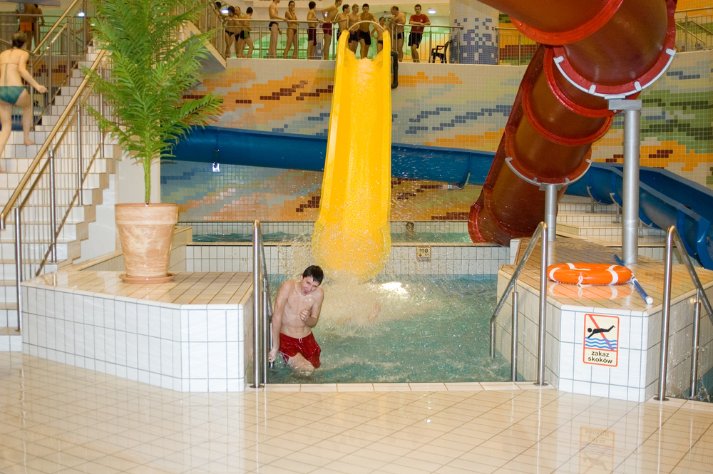 Nieduży basen publiczny wyposażony w 2 zjeżdżalnie typu Anaknda, w tym 1 multimedialna.