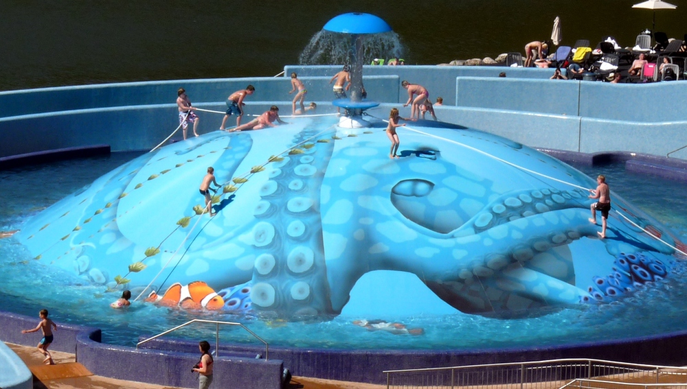 Najveći mjehurić za napuhavanje, tzv. Wet Bubble je atrakcija za djecu i odrasle. Na vrhu je vodena gljiva s užadima za penjanje.